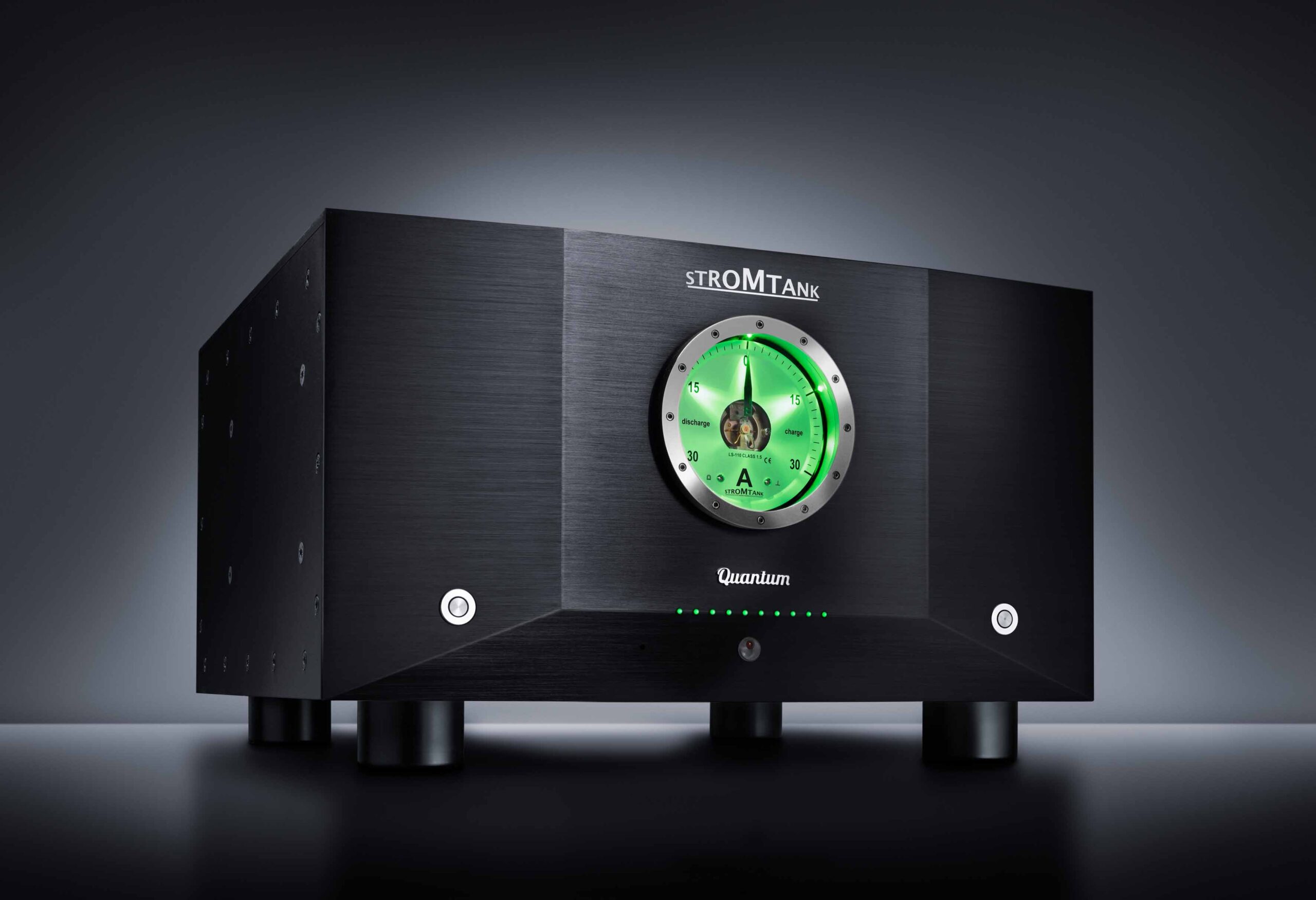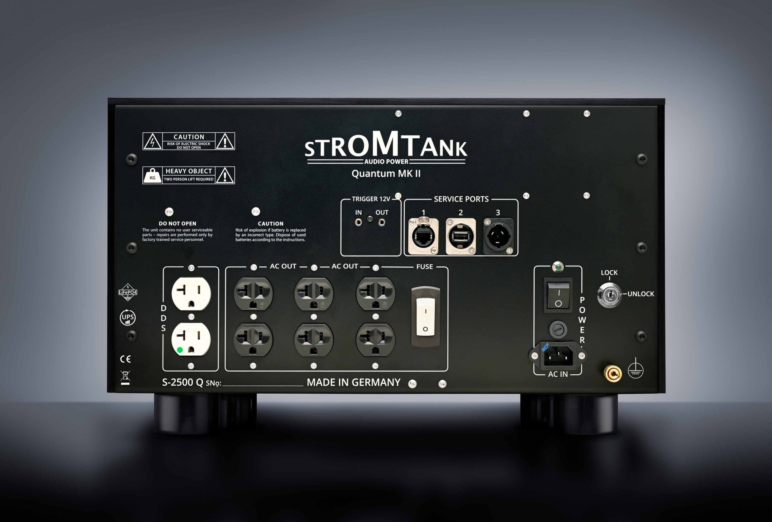 S2500 Quantum MK2 の連続運転時間は、接続している機器の消費電力にもよりますが、コンスタントに 400W を消費したとして4 時間程度がバッテリードライブの目安となります。充電容量が少なくなったら、充電モードに切り替ええてお使いいただけます。充電中はバッテリーからの電源供給ではなく、電源網からの供給となりますが、STROMTANK 内部のフィルターを介し電源供給されますので音質的なアドバンテージを十分お感じいただけます。
