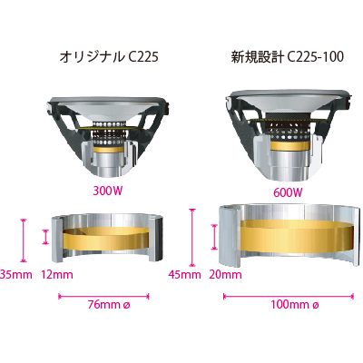 さらにリニアで、より高出力を実現した新開発低域ドライバー、C225-100