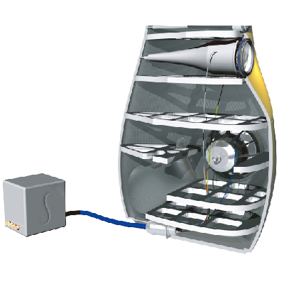エンクロージャー内部に組み込んでいたクロスオーバー回路を外部接続タイプに変更。 ドライバー自身が発生する振動や風圧、マグネットシステムが発生する磁力などの影響を一切受けず、信号にノイズが乗るのを防ぎ、S/N比の向上に大きく貢献しました。また、回路自体を保護し、エンクロージャー内の雰囲気による劣化を防ぎます。